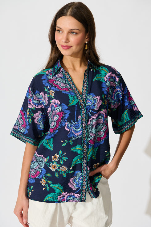 The Fedra Shirt in Navy with Multi Floral print brings professional polish and relaxed ease into one shirt you’ll reach for often. Perfect for the office, casual weekends or layering over with ease.