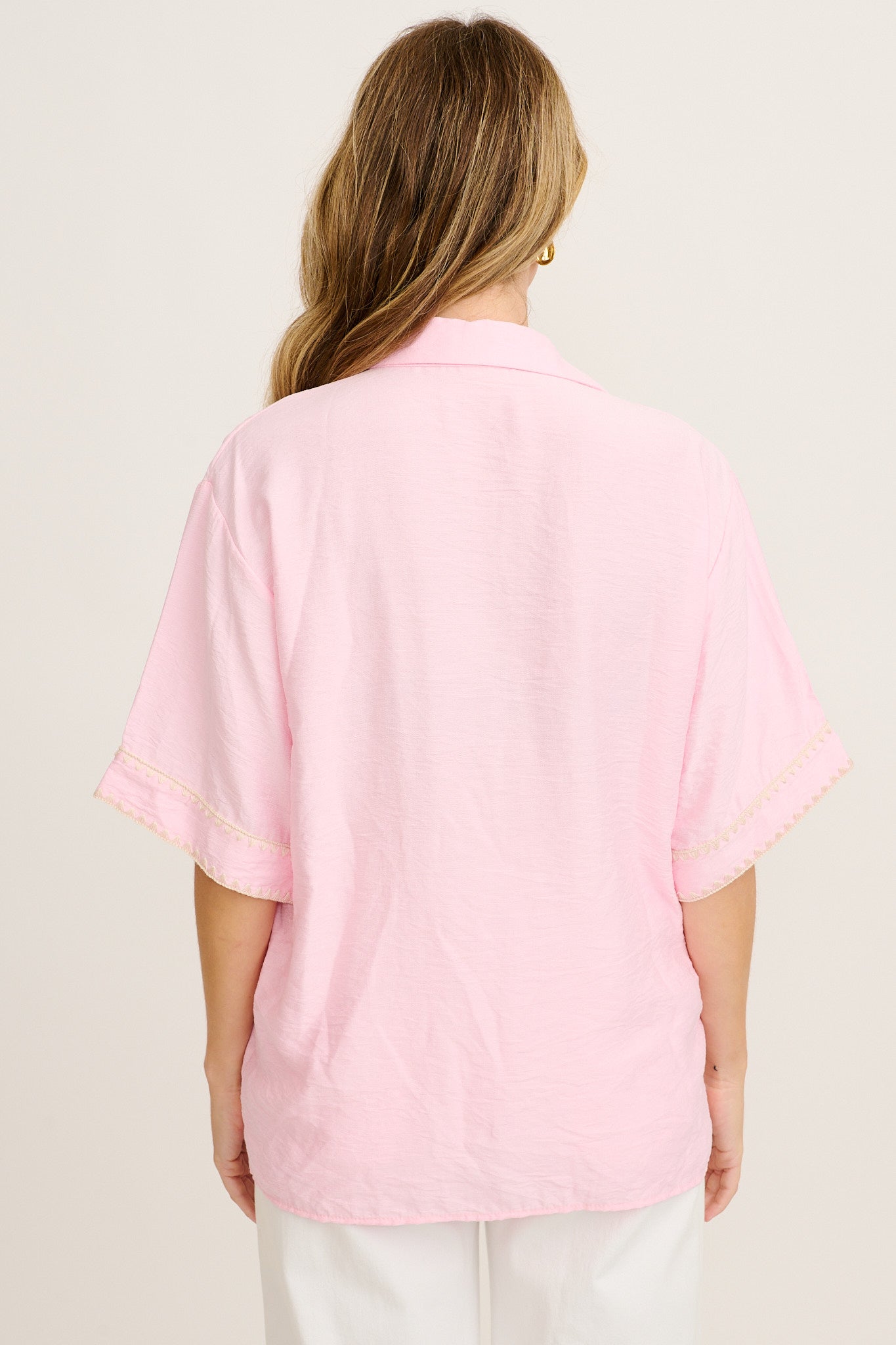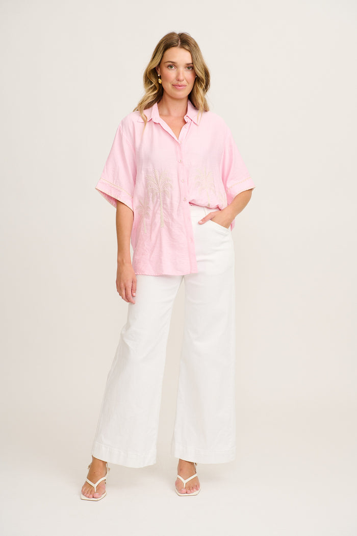 Fedra Shirt in Pink with Palm Tree Embroidery