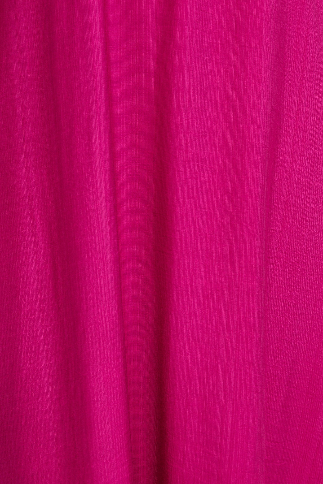 - Lightweight, breathable, non-stretch linen–rayon blend for warm days