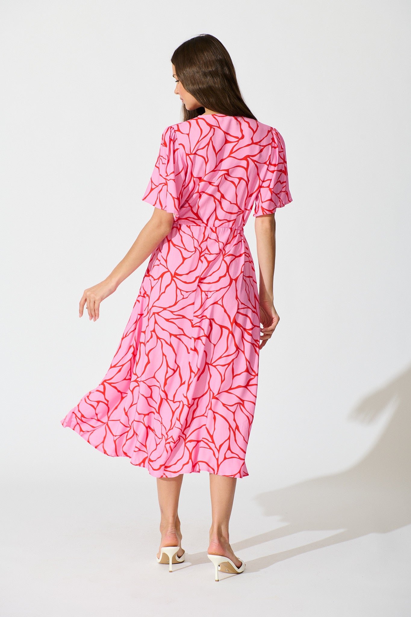 PRE ORDER Melody Midi Dress in in Pink Geometric Print