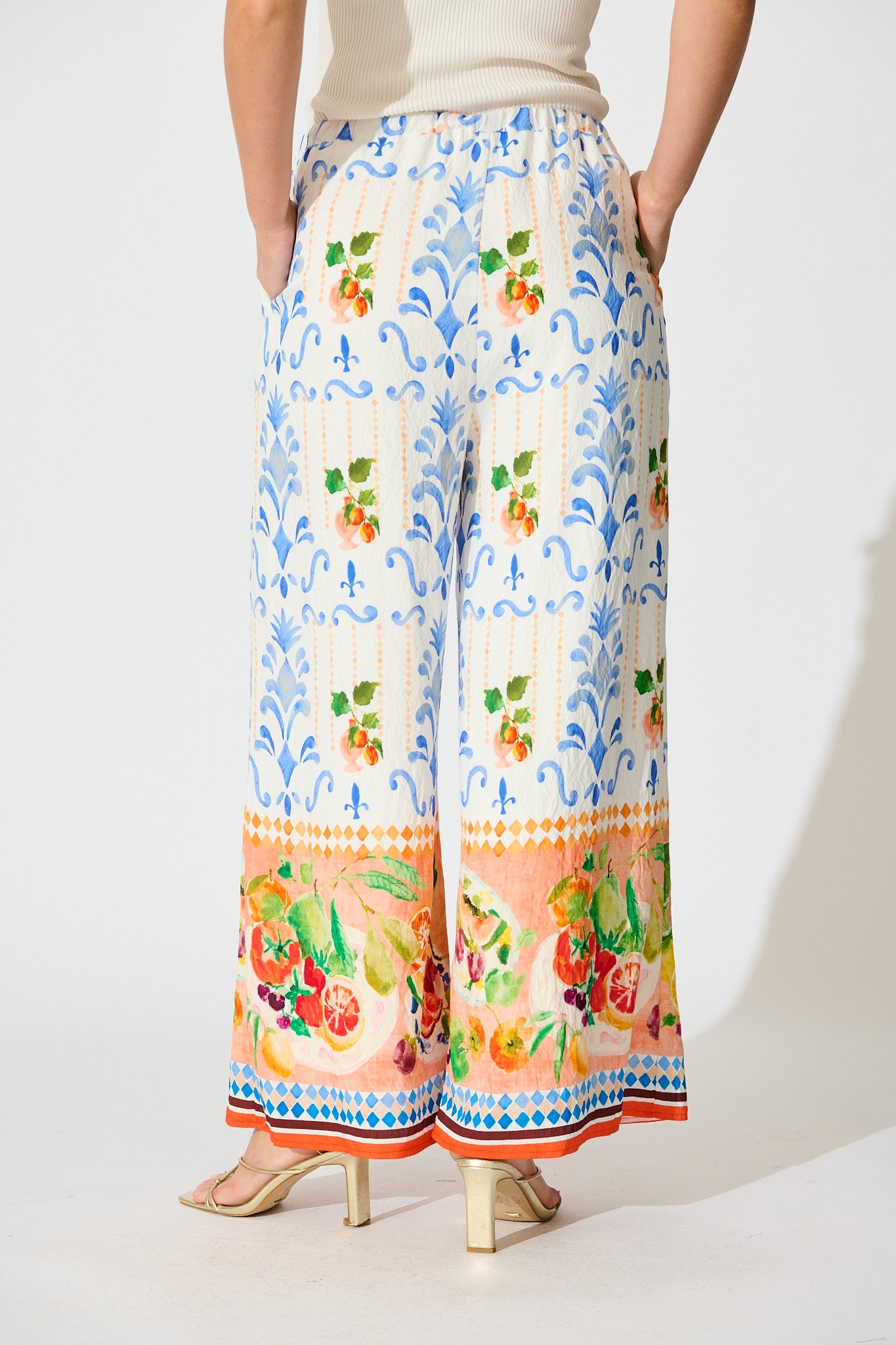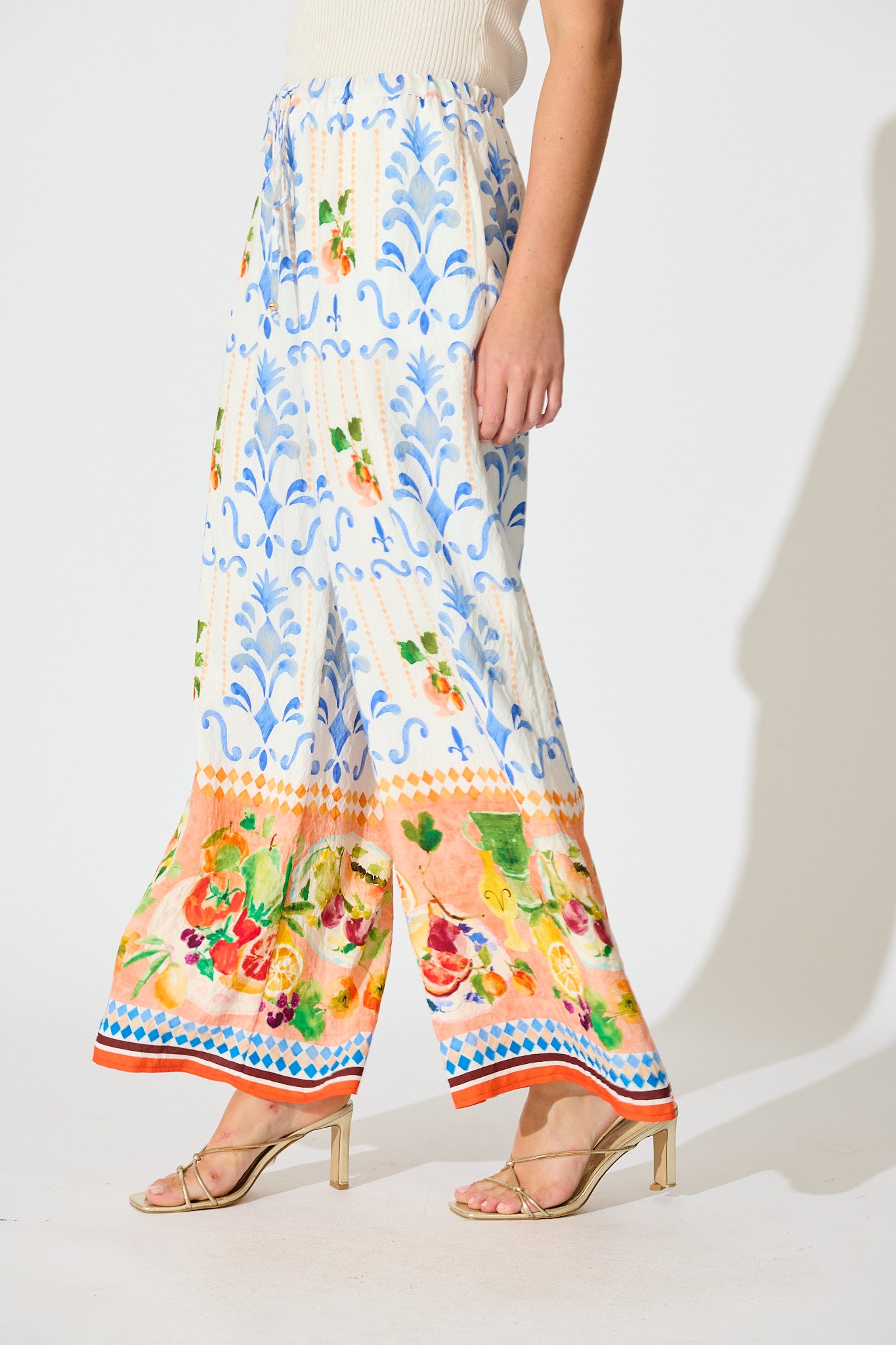 Add personality with the Romeo Pant in Multi Fruit Border Print. Flowy, flattering and full of playful colour, these pants are your go-to for relaxed style with a vibrant twist.