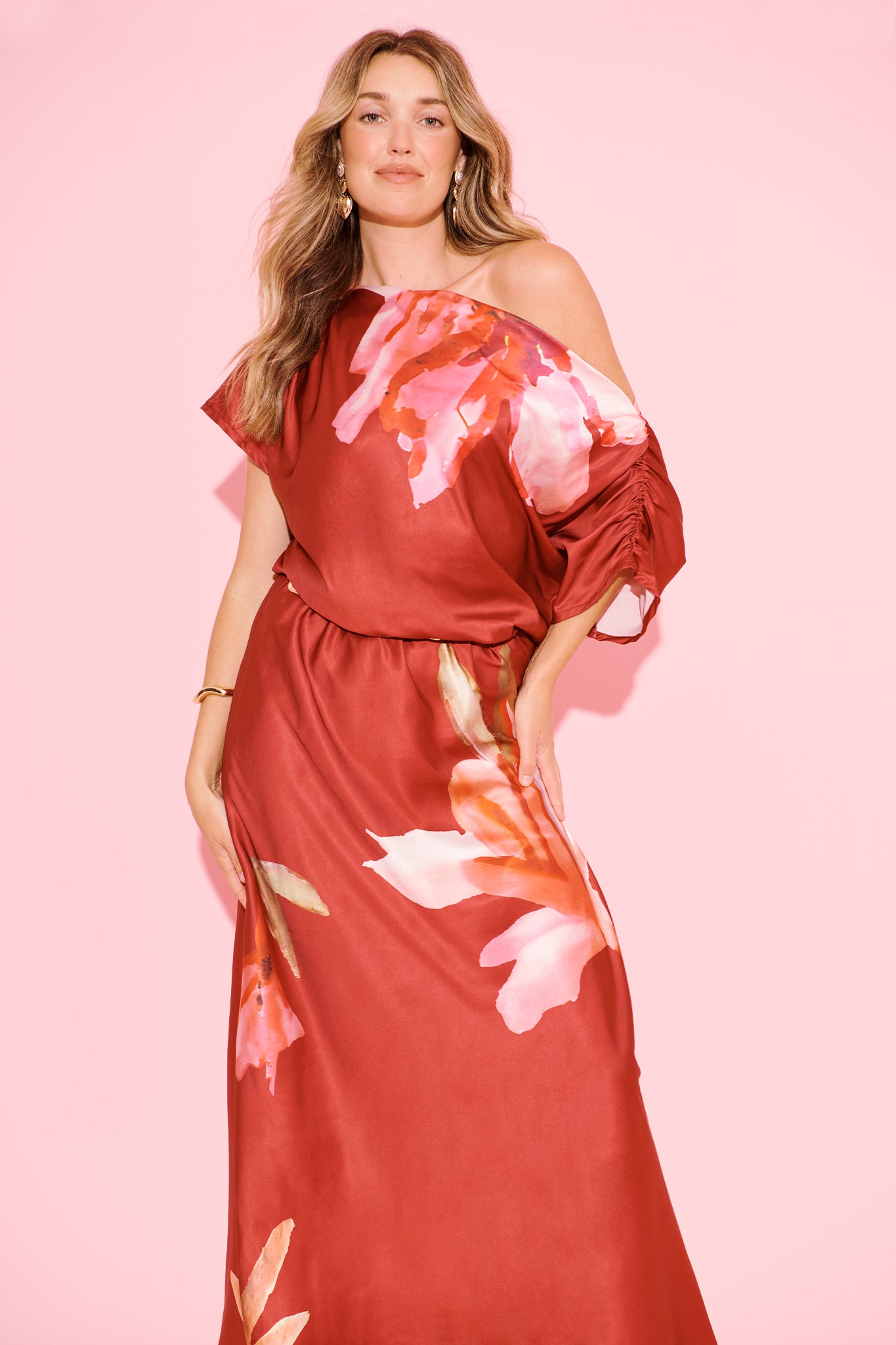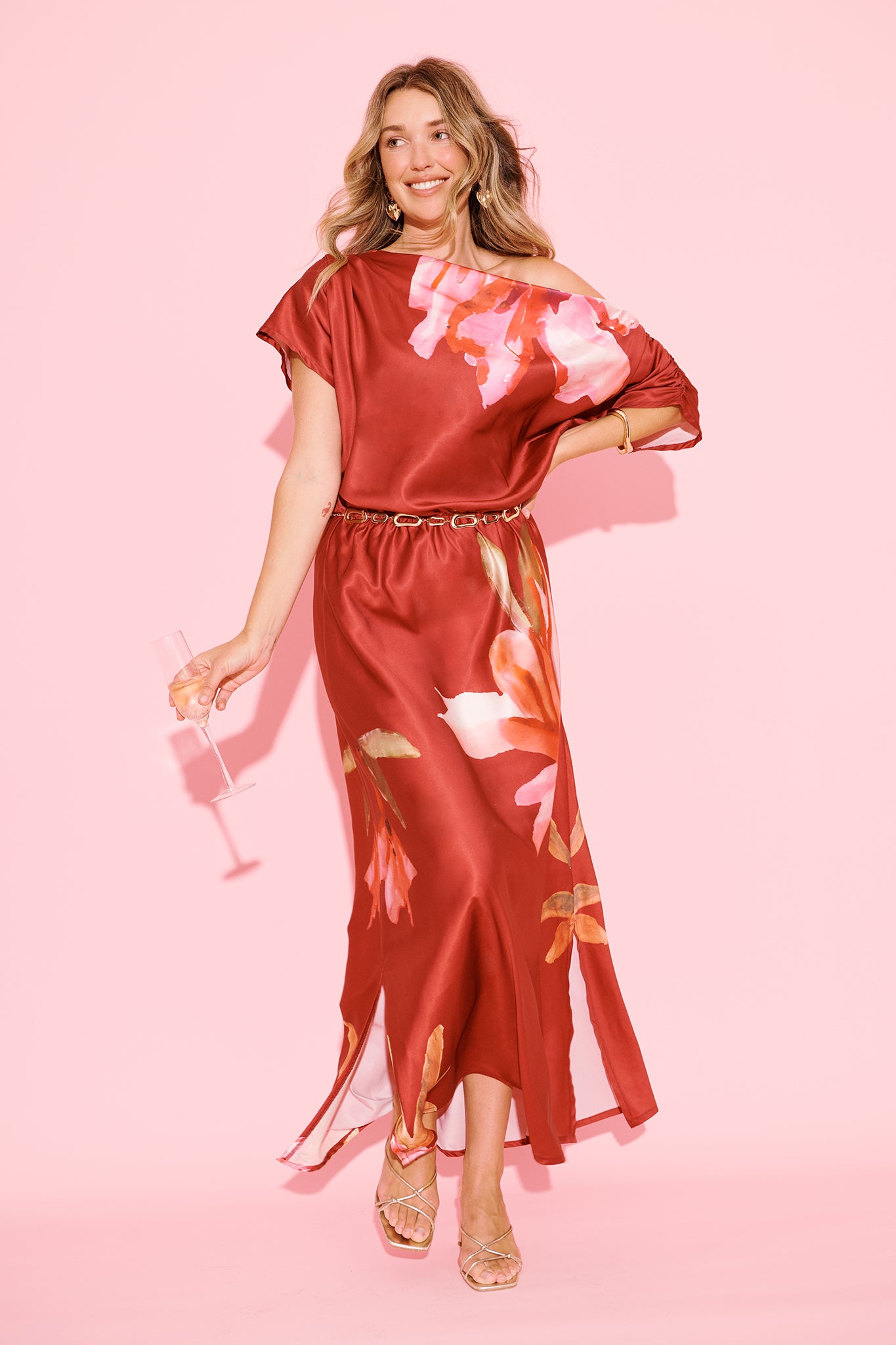 Chic and romantic, the Sarita Maxi Off Shoulder Dress in Wine Floral Satin is your ultimate event-ready style. With its rich colour palette and soft, satiny finish, this dress is perfect for everything from weddings to sunset cocktails.