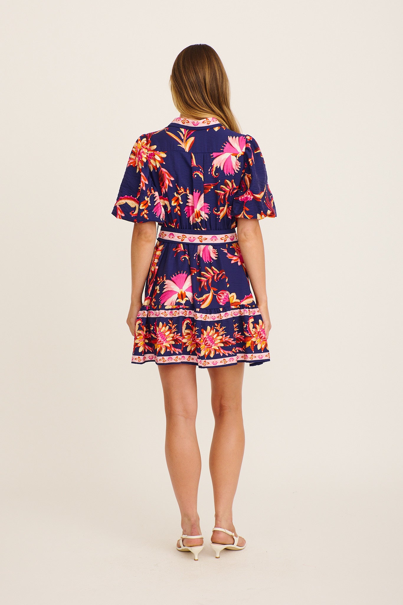 Soulful Shirt Dress in Navy with Pink Floral Linen Blend