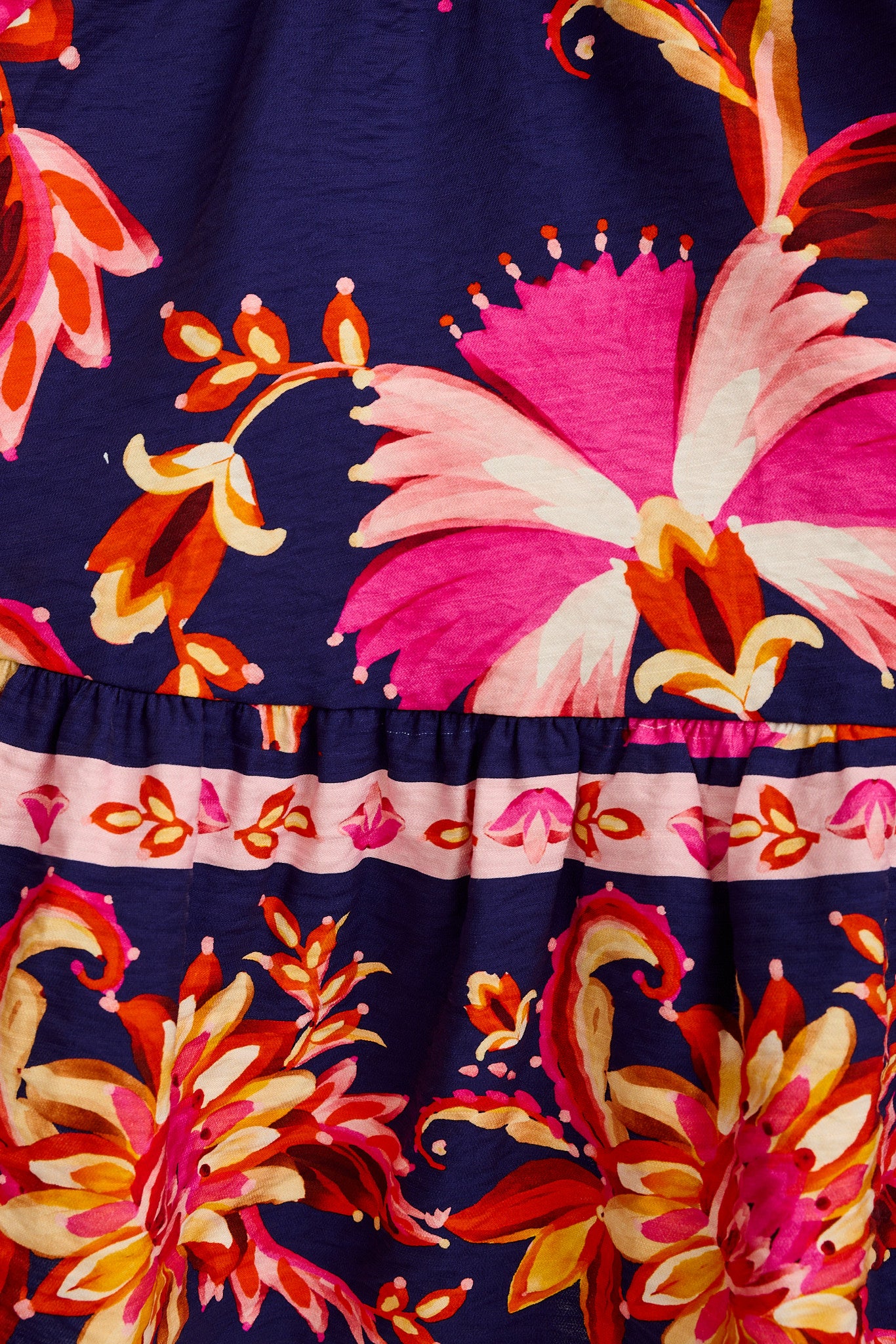 - Navy base with pink floral print (print placement may vary)