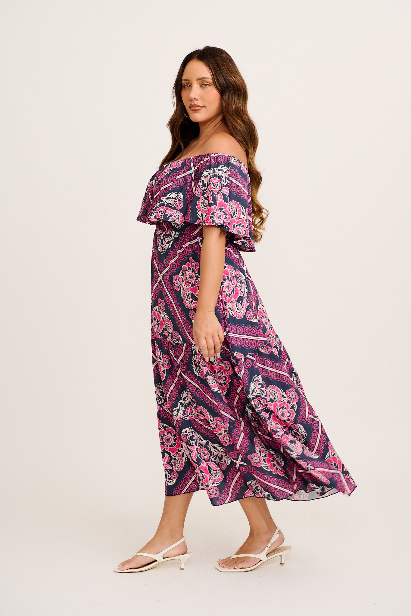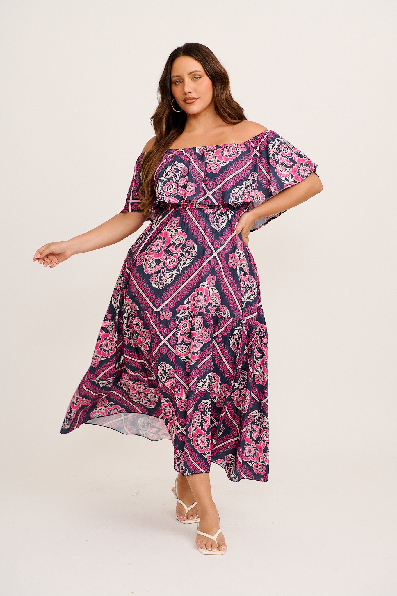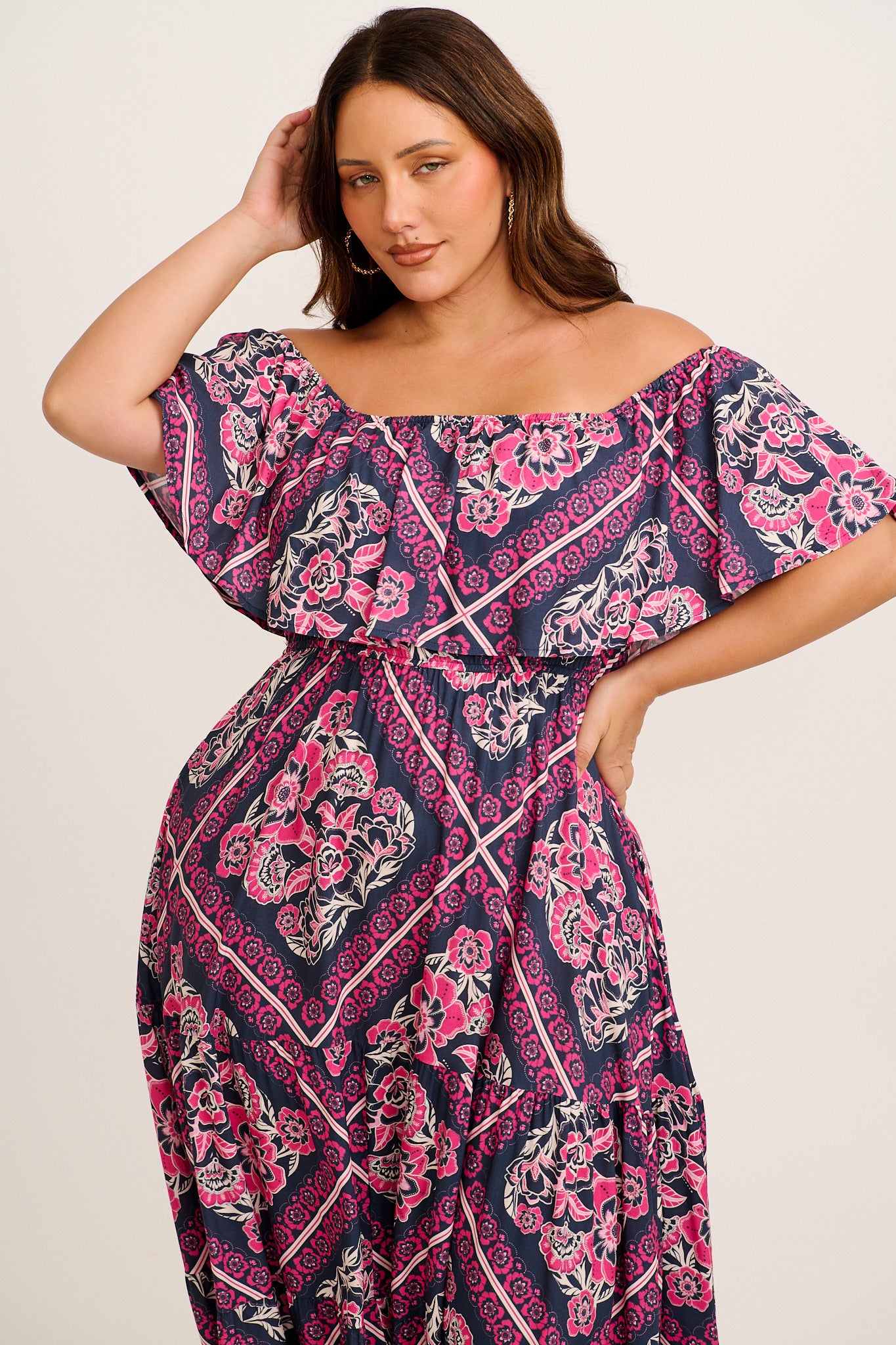 Relaxed days and warm weather escapes are made effortless with the Tranquility Maxi Dress in Navy with Pink Floral Tiles Print. Designed for resort wear, casual outings and sun-filled weekends, this maxi dress blends comfort with standout style.