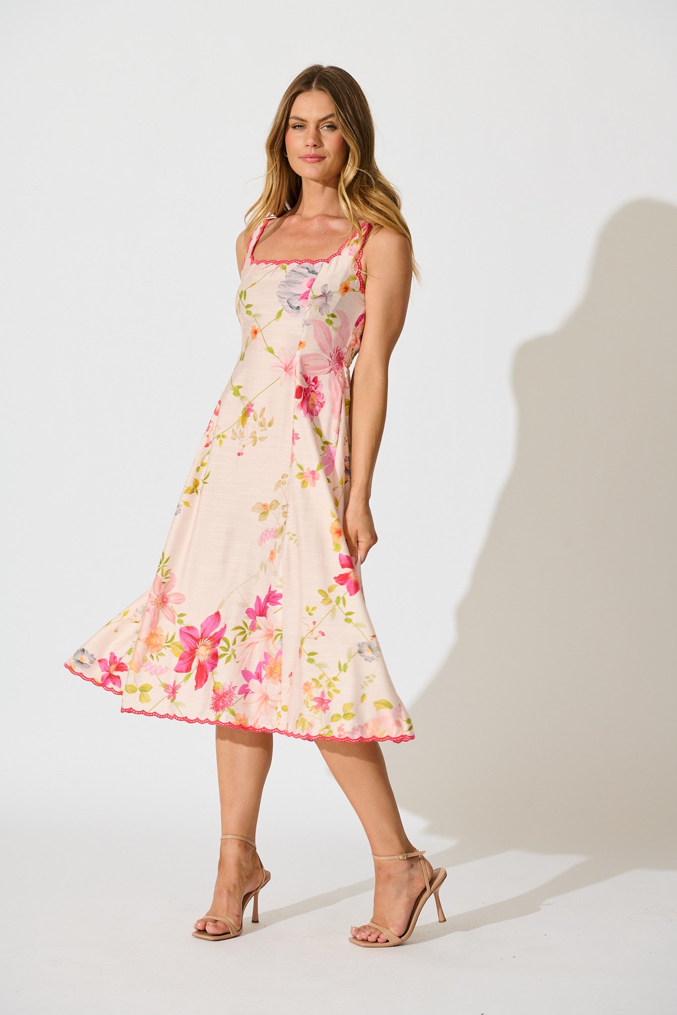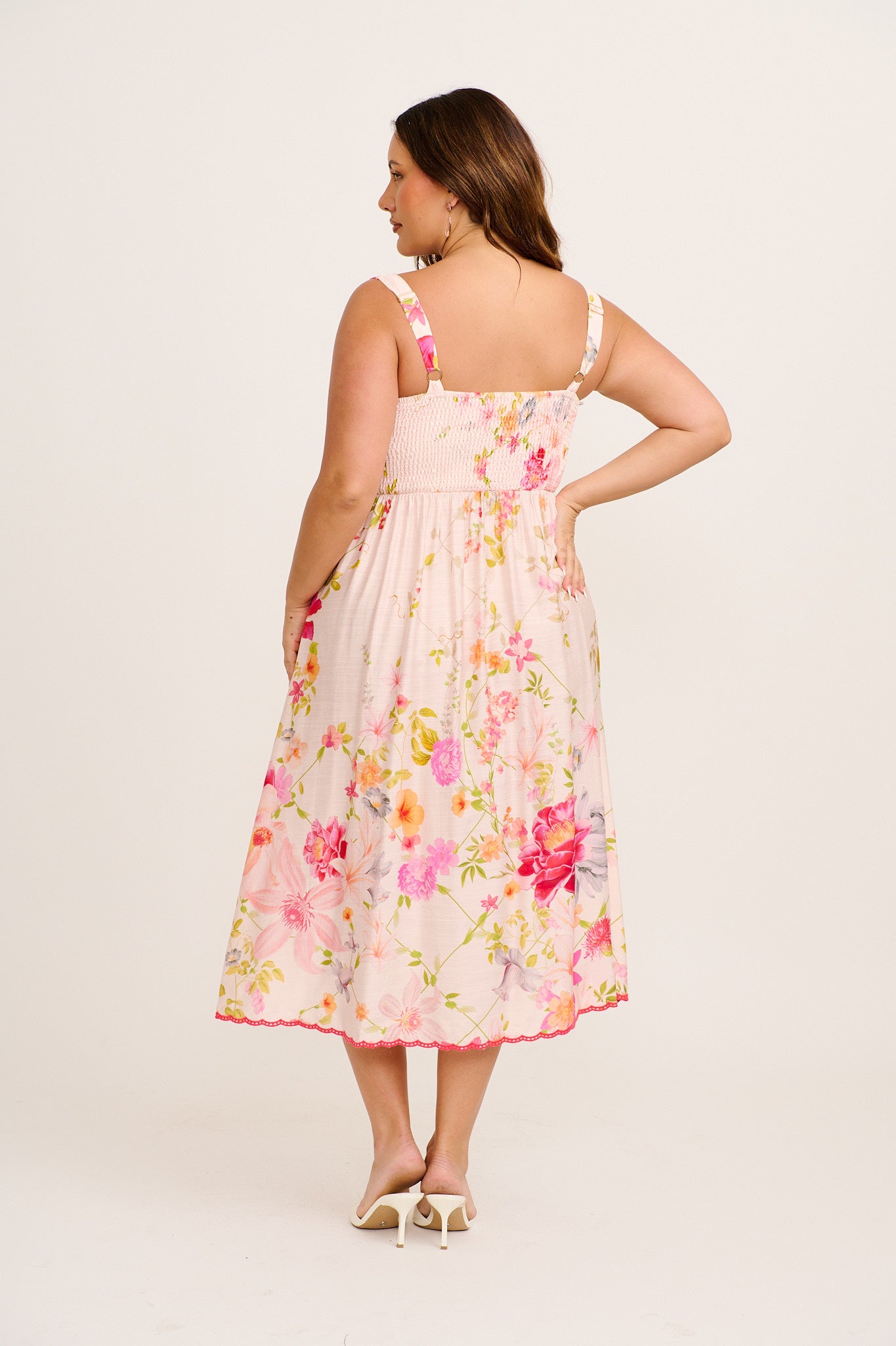 Tuscan Muse Midi Sundress in Light Blush Floral
